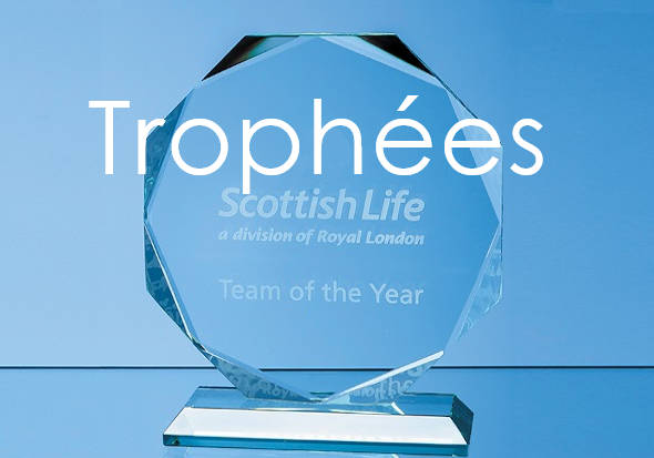 CREONS ENSEMBLE LE TROPHEE QUI VOUS RESSEMBLE ! Contact: +33 (0)1 74 64 97 68Trophées Entreprise, Associations, Collectivités En verre, en métal, en bois, Créations sur-mesure ... Tous nos modèles sont personnalisables ! Tombstones et Blocs 2D/3D Votre logo gravé à l’intérieur d’un bloc en verre Effet Design garanti ! Coupes en métal et Coupes en verre Grandes tailles, avec ou sans anses et couvercles Plus de 400 modèles en lignes ! Trophées Sportifs, Loisirs et Passions 35 thèmes avec chacun ses trophées A partir de 5 €HT le trophée !