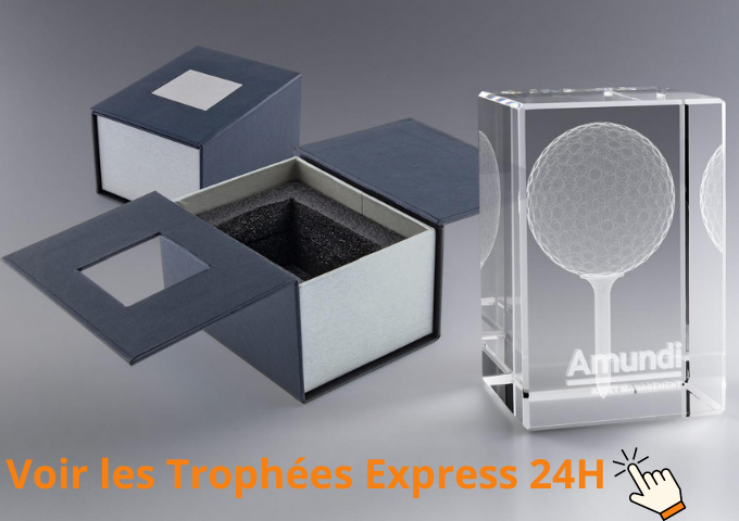 Nous proposons une gamme de trophées personnalisables, prêts à être livrés par coursier dès le lendemain (périmètre Paris et petite couronne).