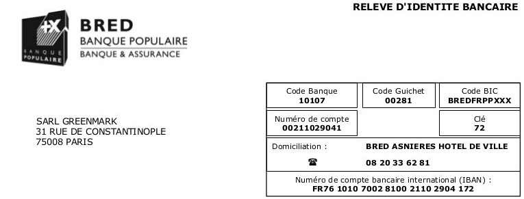 Les chèques doivent être établis à l'ordre de GREENMARK