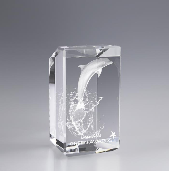 Bloc en verre avec gravure en 3 Dimensions à l'intérieur du trophée.