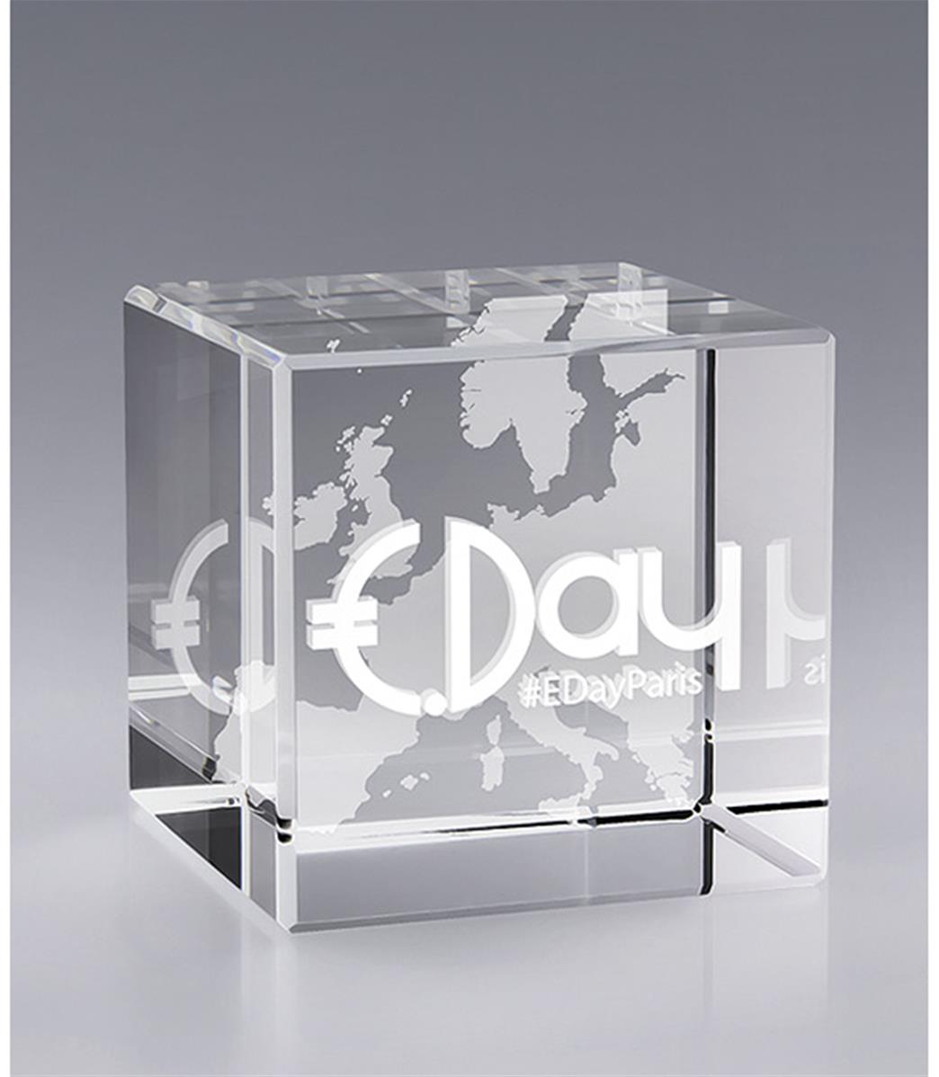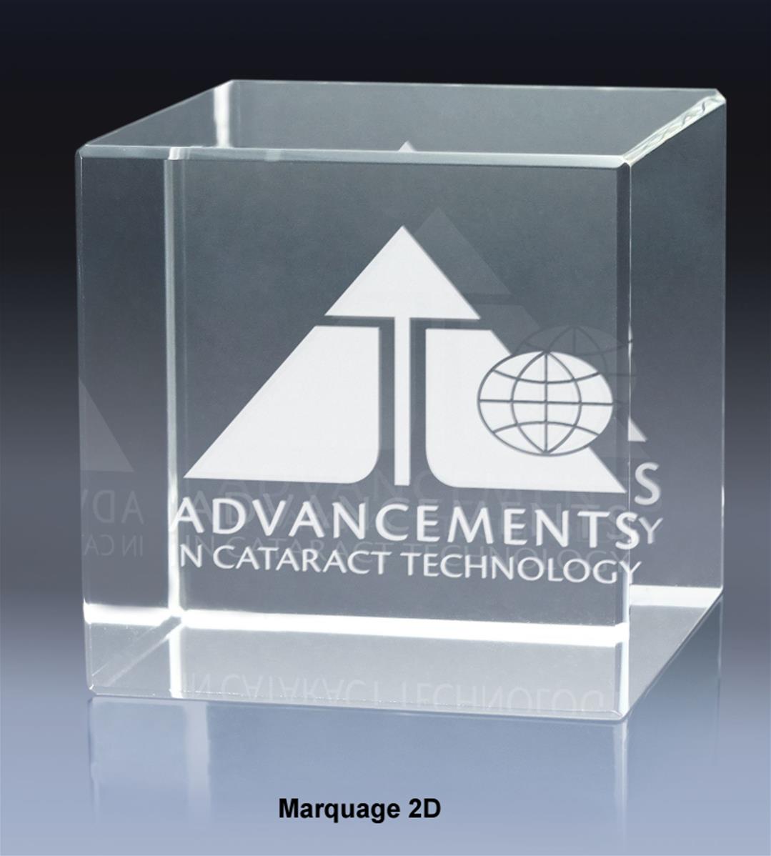 - Cube en verre avec gravure en 2 Dimensions à l'intérieur du Cube