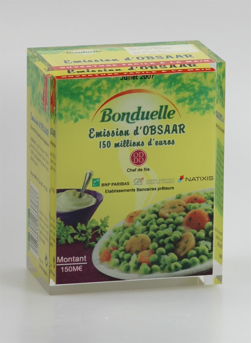 Inclusion d'un objet en carton à l'intérieur d'un bloc transparent