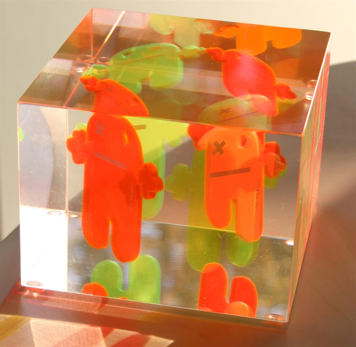 Inclusion d'un objet en matière plastique à l'intérieur d'un bloc transparent