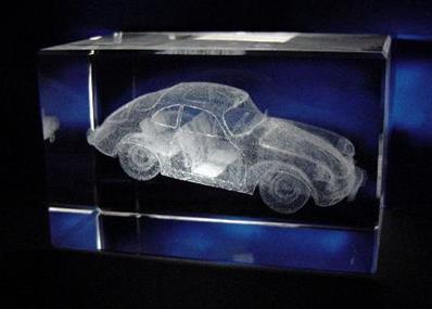 Bloc en verre avec gravure en 3 Dimensions d'une Porsche 356 à l'intérieur du bloc