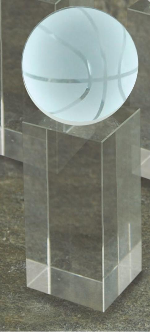 Trophée avec ballon de basket Ø: 5 cm fixé sur un socle en verre