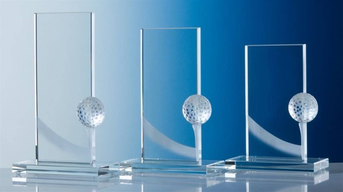 - Balle en verre clair avec alvéoles dépolies sur son Tee en verre