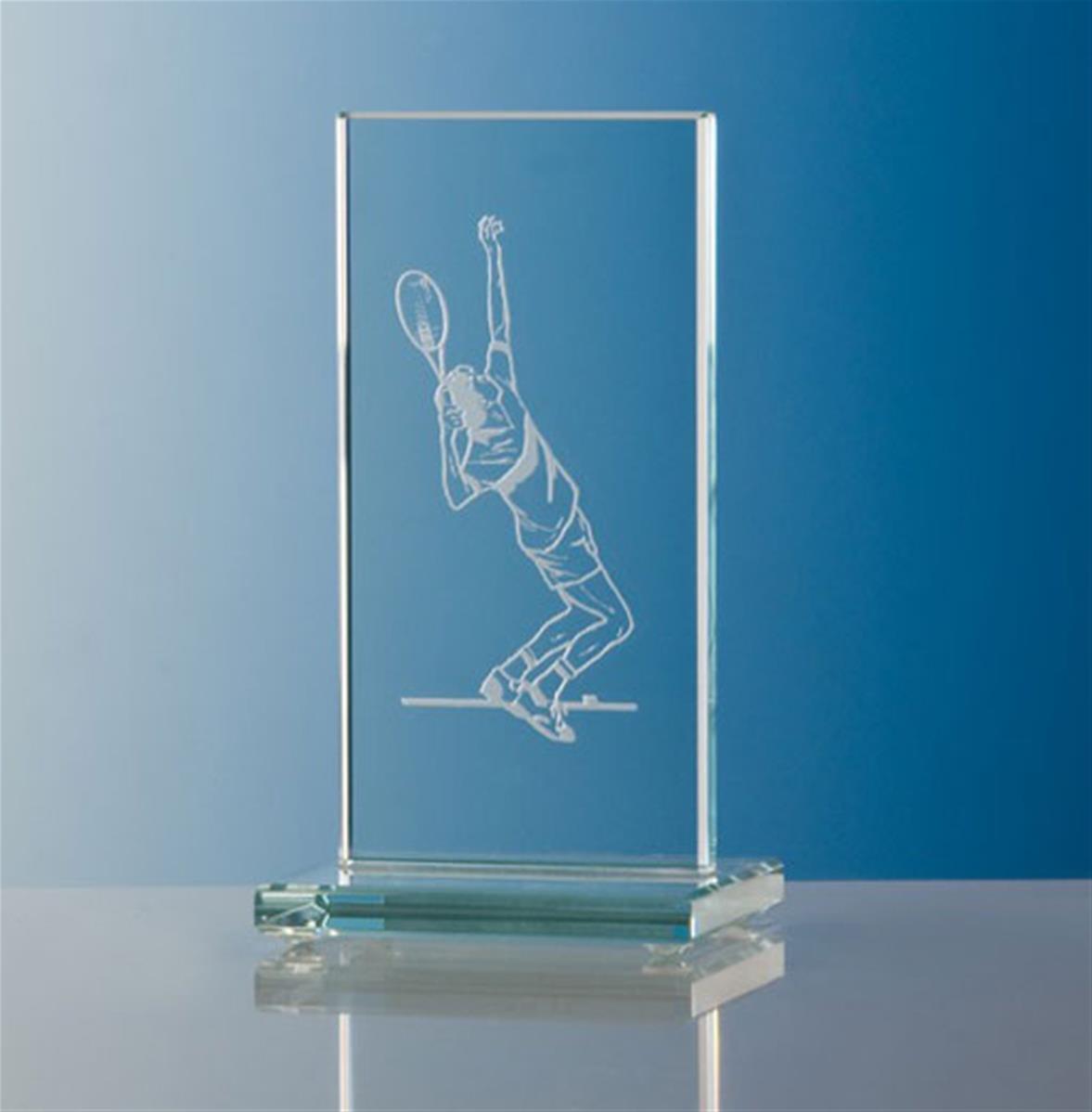 - Trophée en verre avec joueur de tennis gravé en sablage