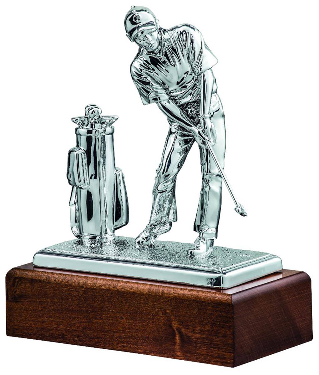 • Joueur de golf + sac en résine métallisée