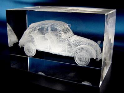 Bloc en verre avec gravure en 3 Dimensions d'une 2CH à l'intérieur du bloc
